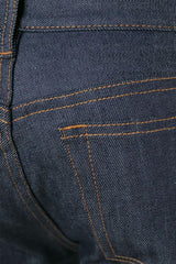 Five pockets. Button fly. The first button is engraved 'A.P.C. rue Madame près du Luxembourg'. Tone-on-tone topstitching. Embossed metal rivets. Contrasting caramel-coloured topstitching. Non-selvedge denim.