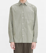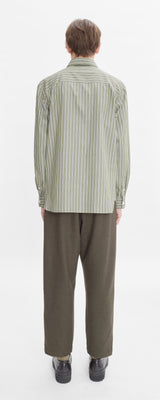 A.P.C. Khaki Shirt in organic cotton with white stripes