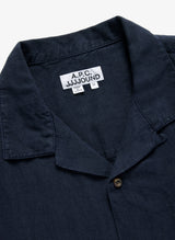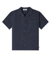 Dark navy blue short-sleeve shirt in linen. A.P.C. and JJJJound interaction.