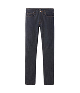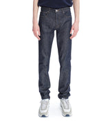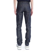 A.P.C. Japanese raw denim. Very stiff fabric that wears in over time. Unisex jeans. the Petit Standard Jeans have a very tight leg fitted at the bottom. Straight and fitted leg. Straight low-rise. Five pockets, button fly. The first button is engraved "A.P.C. rue Madame près du Luxembourg".