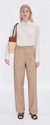 - wide, long leg. pant pleats front and back.