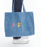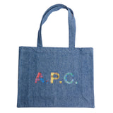 A.P.C. Horizontal tote bag in washed denim with tartan A.P.C. logo.