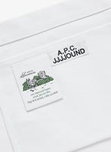 A.P.C. White "Hôtel Souvenirs" tote bag in organic cotton. A.P.C. and JJJJound interaction.