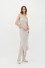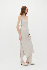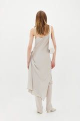 Long slip dress featuring a luxurious look. The length can be adjusted with shoulder straps