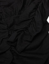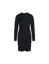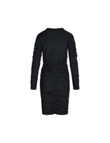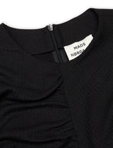 This Mads Norgaard Pollux Aachen Dress is made of 60% polyester, 38% recycled polyester and 2% elastane. The material is in a stretchy material with a crepe surface. The dress is draped from top to toe inclusive of the arm. This dress is a tight fit and knee length