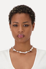 PEARLS OF DIFFERENT SHAPES CHOKER NECKLACE WITH PIERCING DETAILS.