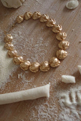Sun-dried orecchiette made by hand brought back from Puglia, were preserved into moulds by our Bali artisans to use for the casting process then lovingly designed as modern heirlooms. All of the jewellery in Amanti is made of 18k gold plated recycled bronze.
