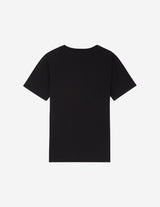 This MAISON KITSUNE Black cotton T-shirt features a round neckline and short sleeves. A fox's head, emblem of the fashion house, is embroidered on the chest.
