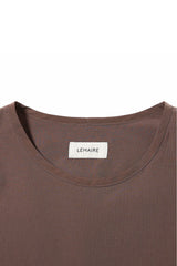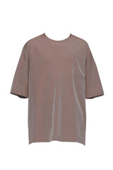 Half-sleeve woven cotton and viscose-blend t-shirt in burgundy. Crewneck collar. Welt pocket at chest.