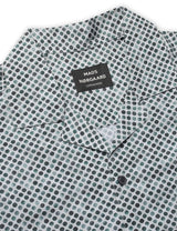 This Mads Norgaard is an easy breasy summer water-colour dot printed shirt. The collar is cut away that is wide open and with a mini reverse beneath. It has short sleeves and a regular fit.