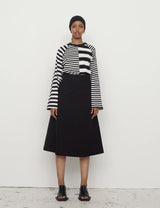 This Mads Norgaard long, elegant skirt Soft Suiting Lunar Skirt is made of 64 % recycled polyester, 34 % viscose and 2 % elastane that is woven into a slightly spongy structure.