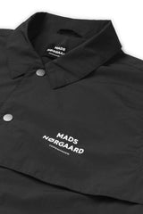 Nylon Coach is a sports-inspired men's jacket. The jacket has two side pockets, adjustable lace closing and a Mads Nørgaard print on the left side of the chest. Nylon Coach is cut from nylon in a regular fit, with a single row of buttons.