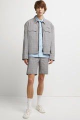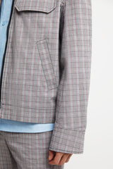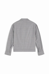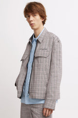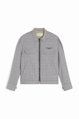 Maison Kitsune Grey Zipped Blouson in Prince of Wales checkered cotton. Turn down collar, long sleeves, breast flap pockets and side slash pockets. Straight-cut model. The male model is 6 and is wearing size M.