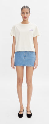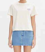A.P.C. Ecru T-shirt in heavyweight organic cotton with a logo embroidered over the heart.