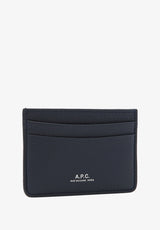 A.P.C. Cardholder in Grained leather - Dark navy blue.