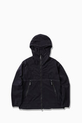 PERTEX QUANTUM AIR woven of 20 denier high strength nylon yarn with high density. Excellent in windproof water repellant durability and breathability. Packable in attached pouch. Reflector stitch enhances nighttime visibility.