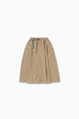 And Wander Cargo skirt is made out water-repellent ripstop fabric with unique firmness and color using split yarn. A skirt with cargo pants pockets.