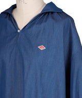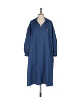 - This pullover dress features a front opening. Gathering at the collar and sleeves gives it a voluminous feel.