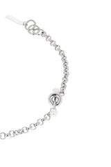 FEATURES A BARBELL-INSPIRED PIERCING ACCENTED WITH SMALL OFF-WHITE PEARL BEADS.