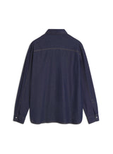 •Lightweight denim shirt•Oversize fit•Classic collar•Maison Kitsuné engraved snap button closure•Patch chest pocket•Contrasted topstitching•Long sleeves with straight buttoned cuffs•Rounded hem
