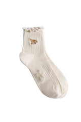 Cotton socks with embroidered Baby Fox and Maison Kitsuné Handwriting signature.