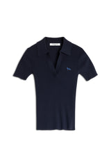 Ribbed cotton polo shirt with stripes. Fitted cut with embroidered Baby Fox patch.