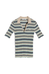 W Mint Ice/Smokes Stripe Fine Rib Striped Polo