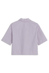 Short sleeve cotton twill shirt. Cropped cut with Maison Kitsuné Handwriting signature embroidered.