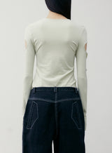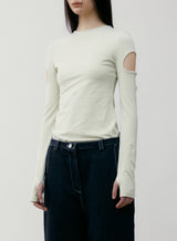 Boat neck detail with thumbhole detail
