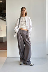 They feature a long length and wide fit, and the pin tuck detail on the front is a highlight.