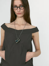 Khaki Off Shoulder Shirred Blouse Top