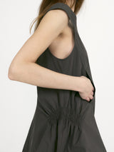 Curved silhouette with side shirring