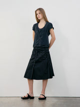Black Raw Cut Shirring Skirt
