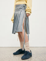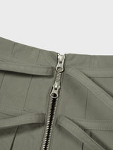 Khaki Pleated Zipper Skirt