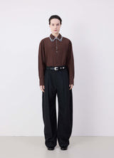 The Curved Volume Tailored Pants are made from poly-wool woven into a mélange twill, with a dense yet supple hand for fluid tailoring.