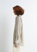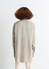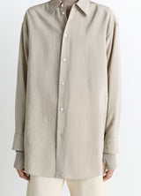 This long, oversized shirt is inspired by Lemaire's love for movement and features a necktie-style tie that can be tied or left loose. It is crafted in a dry silk blend, a classic house fabric with a soft hand and slightly crinkled texture.