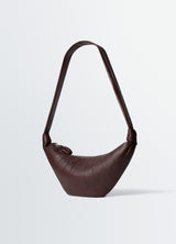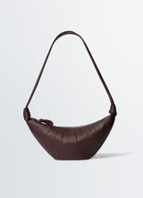 The Croissant line is emblematic of the Lemaire wardrobe. This versatile, supple bag features a curve inspired by the Viennoiserie of the same name, created by a combination of topstitched panels and knotted elements. The large bag is crafted in nappa lamb leather, a soft, supple material characterized by its smooth hand and natural shine, certified LWG Gold.