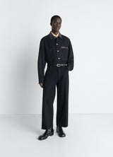 These wide-leg trousers reflect LEMAIRE’s taste for reinterpreting workwear pieces. This wardrobe essential is made from medium-weight black denim.