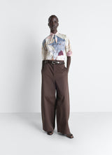 Inspired by LEMAIRE’s harmony between comfort and elegance, this classic shirt is crafted from refined printed cotton. It features an integrated scarf that can be left loose or tied for a feminine touch.