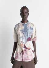 Scarf shirt in cotton printed with Aquarelle