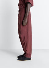 These parachute trousers are a strong statement in the LEMAIRE wardrobe, with stitched pleats at the knees. The rounded leg can be tightened at the hem with a tab and two buttons. The style is made from washed technical cotton, a Maison signature material.