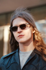 Clean lines meet understated sophistication. The sharp rectangular frames are crafted by hand from organic- and biodegradable acetate, while the stainless steel hinges and coated screws ensure premium quality for long term wear.