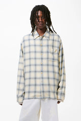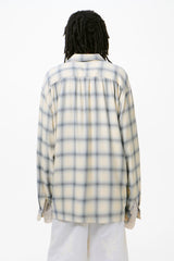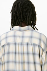Every Shirt in Sacramento Cowboy Viscose. Produced in a Japanese viscose fabric, the men's Every Shirt has a relaxed fit and features a check pattern, a straight hem, a clean placket with wide facing, mother of pearl buttons and a back yoke with subtle ruching.