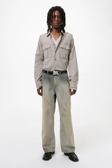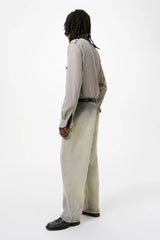 This garment is manufactured using carefully sourced material with a unique treatment process that will give each garment an individual shade and appearance. This technique could result in some color bleed onto lighter garments or surfaces. The garment shall be shaped by its wearer and naturally distress over time to finish the design process.
