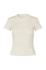 This Samsoe Samsoe Short-sleeved jersey T-shirt. Rib-knitted crewneck. Melange look. Main material made from an elastic blend including organic cotton.