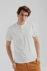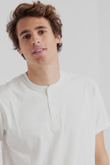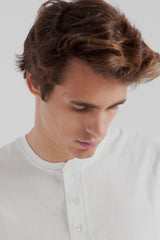 Easy and comfy everyday essential with buttons. This Thinking MU t-shirt is made from organic cotton. lighter and more comfy than a normal cotton tee. Click here to check traceability and impact of this garment.