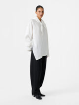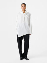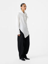 Studio Nicholson Bute shirt is cut with an asymmetric front panel that falls softly over the body, embodying a relaxed feel that’s complemented by the detachable scarf.