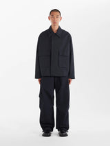 With an easy-wearing square silhouette, Regi is gently oversized without being exaggerated. The jacket’s front is defined by two large bellows patch pockets, dropped shoulder seams, and a concealed zip fastening.