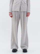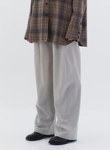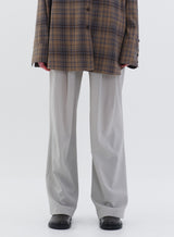 It features a long length and a wide fit, and the pleats detail on the front is the focus of the whole garment.