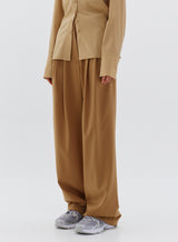 It features a long length and a wide fit, and the pleats detail on the front is the focus of the whole garment.
